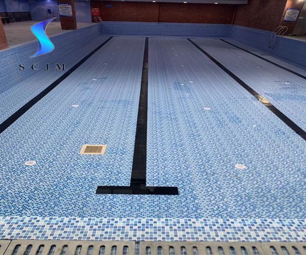 浙江省室外小區(qū)游泳池改造防水膠膜定制圖案案例